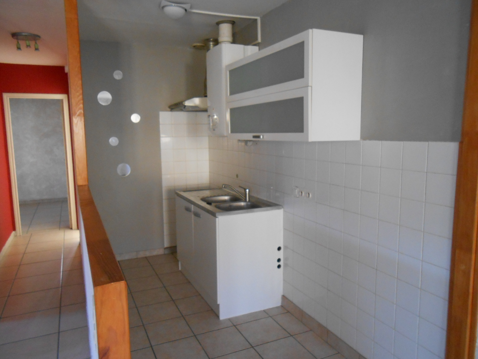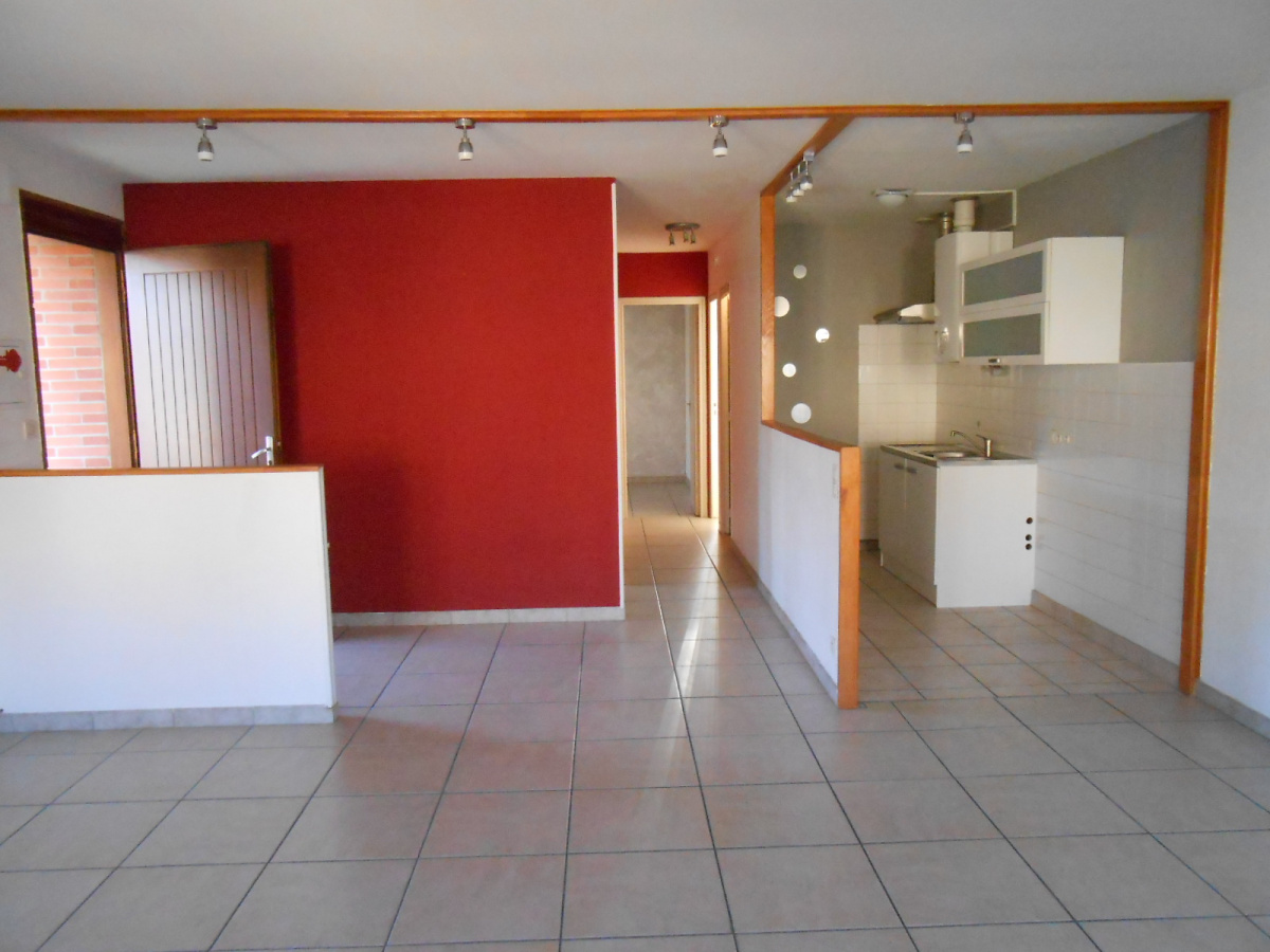 APPARTEMENT T3 de 64 m² au 1er étage d'un petit immeuble. Situé Rue Cazeneuve, au centre du village. Entrée donnant sur le séjour/ cuisine ouverte. Dégagement: 1 WC, 2 chambres dont 1 avec rangement, Salle de bains. Chauffage au gaz. LIBRE. Loyer: 510 E + PC 20 E (Taxe Om, entretien chaudière) = 530 E / mois. Prévoir en sus du loyer: eau, gaz, �lectricité.