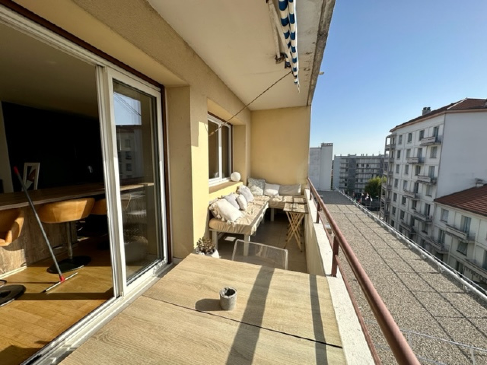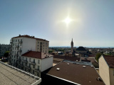EXCLUSIVITÉ, ROMANS En hyper centre-ville avec Vue panoramique. Au 6ème étage avec ascenseur, un superbe APPARTEMENT de type 3, entièrement restauré avec beaucoup de goût, d?une surface de 74 m², un hall d'entrée (placard) ouvert sur une lumineuse pièce de vie de 43 m2, exposée Ouest, une cuisine entièrement équipée + électroménagers avec table de repas intégrée, un bel espace salon, le tout donnant sur une TERRASSE-balcon de plus de 12 m² avec une vue dégagée, un dégagement nuit avec un coin buanderie, deux chambres exposées Est dont une avec balcon. De plus, au sous-sol, une CAVE et une PLACE DE PARKING privative. Copropriété de 31 Lots principaux. Charges 2044 €/An, chauffage compris. DPE & GES D (181-27). Estimation des coûts annuels 1028 € (prix indexés 2015). Prix : 180 000 € Honoraires Charge Vendeur. Immobilier de Pauline 04 75 47 67 29.