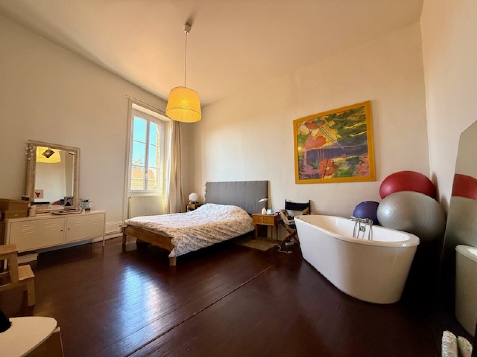 CO-EXCLUSIVITÉ, ROMANS, En hyper centre-ville. Au 2ème et 3ème étage d'une maison bourgeoise, (copropriété de 5 lots principaux). Deux beaux APPARTEMENTS dont un avec une TERRASSE TROPEZIENNE. Un premier appartement de type 4 d'une surface de 129.68 m² au sol (128.79 Carrez), avec de belle hauteur sous plafond, des planchers + cheminée, comprenant un séjour / salon de 40 m² environ, une lumineuse cuisine équipée / salle à manger de plus de 16m², trois chambres dont une avec dressing et une avec baignoire, une salle d'eau aménagée, un wc. Un second appartement de type studio (Kitchenette à réaliser), d'une surface de 42.32 m² au sol (32.79 Carrez) une belle pièce de vie mansardée avec une charpente apparente donnant sur une jolie TERRASSE exposée Sud Ouest de 15 m² environ et une salle d'eau aménagée avec un wc. (Possibilité de réunir les deux appartements). De plus, une CAVE. Charges 1350 € /An. DPE & GES C (152-23) - Montants estimés des dépenses annuelle d'énergie pour un usage standard entre 1672 et 2262 € (prix moyens indexés en 2021). Prix : 219 000 € Honoraires Charge Vendeur. Immobilier de Pauline 04 75 47 67 29.