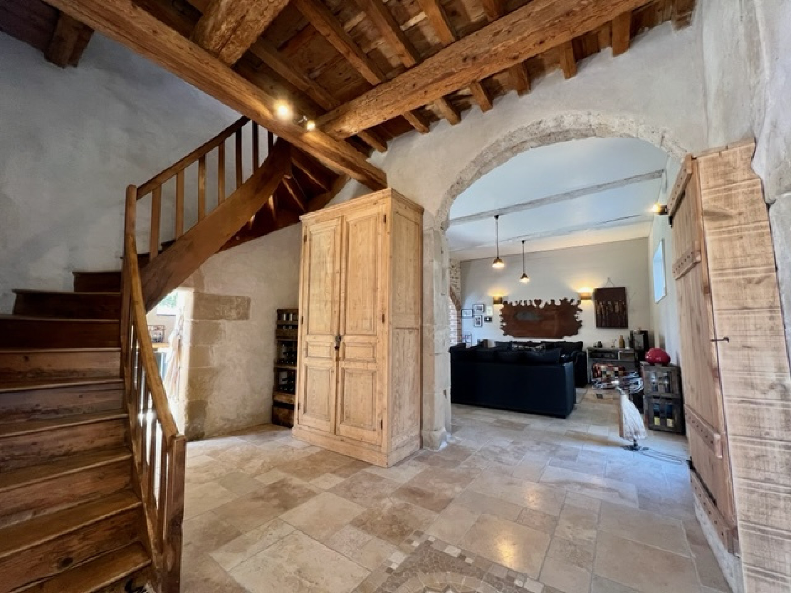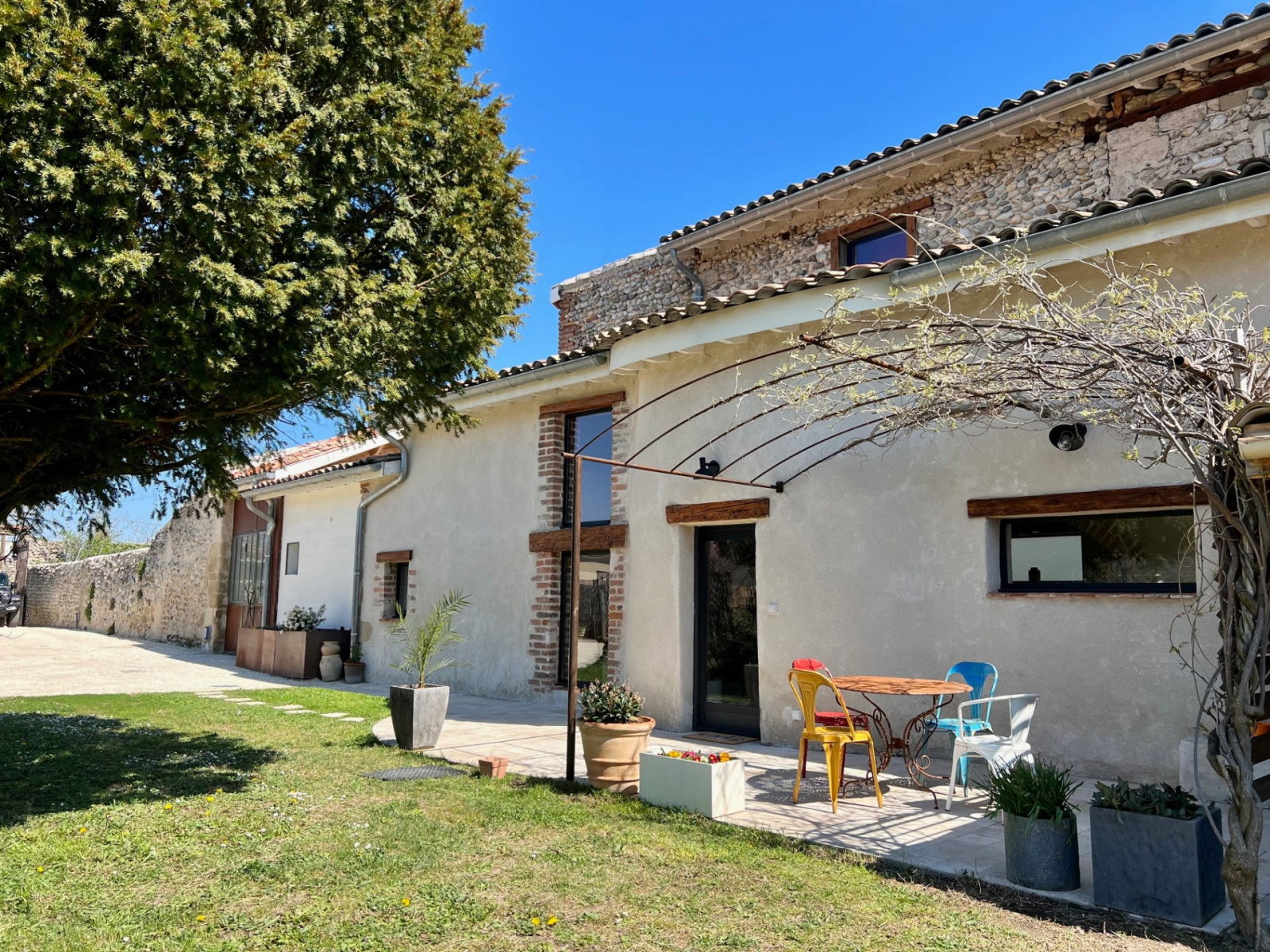 EXCLUSIVITÉ, ROMANS A 1 km à pied du centre-ville. Bâtisse du XVIIème Siècle restaurée avec beaucoup de goût d'une surface de 279 m², comprenant une cuisine équipée ouverte sur une pièce de vie séjour-salon de 51 m² avec une superbe voûte (briques et pierres), un hall/dégagement de 13 m² donnant sur une magnifique cour intérieure de 35 m² (terrasse couverte avec bassin), un bureau en mezzanine, une buanderie, un wc suspendu, une première suite de 24 m² avec un espace dressing et une salle de bains complète (douche italienne, baignoire...), deux chambres, une salle d'eau avec un wc, une seconde cuisine équipée ouverte sur un espace salon de 34 m² environ, un cellier, un second salon, deux chambres, une salle d'eau avec un wc, une seconde suite de 48 m² avec une salle d'eau et un wc. De plus, un garage de 20 m² avec une mezzanine et une petite dépendance. L'ensemble sur une parcelle de terrain clôturée et arborée de 801 m², au calme. DPE & GES C (172-5). Prix : 566 000 € FAI. Immobilier de Pauline 04 75 47 67 29.