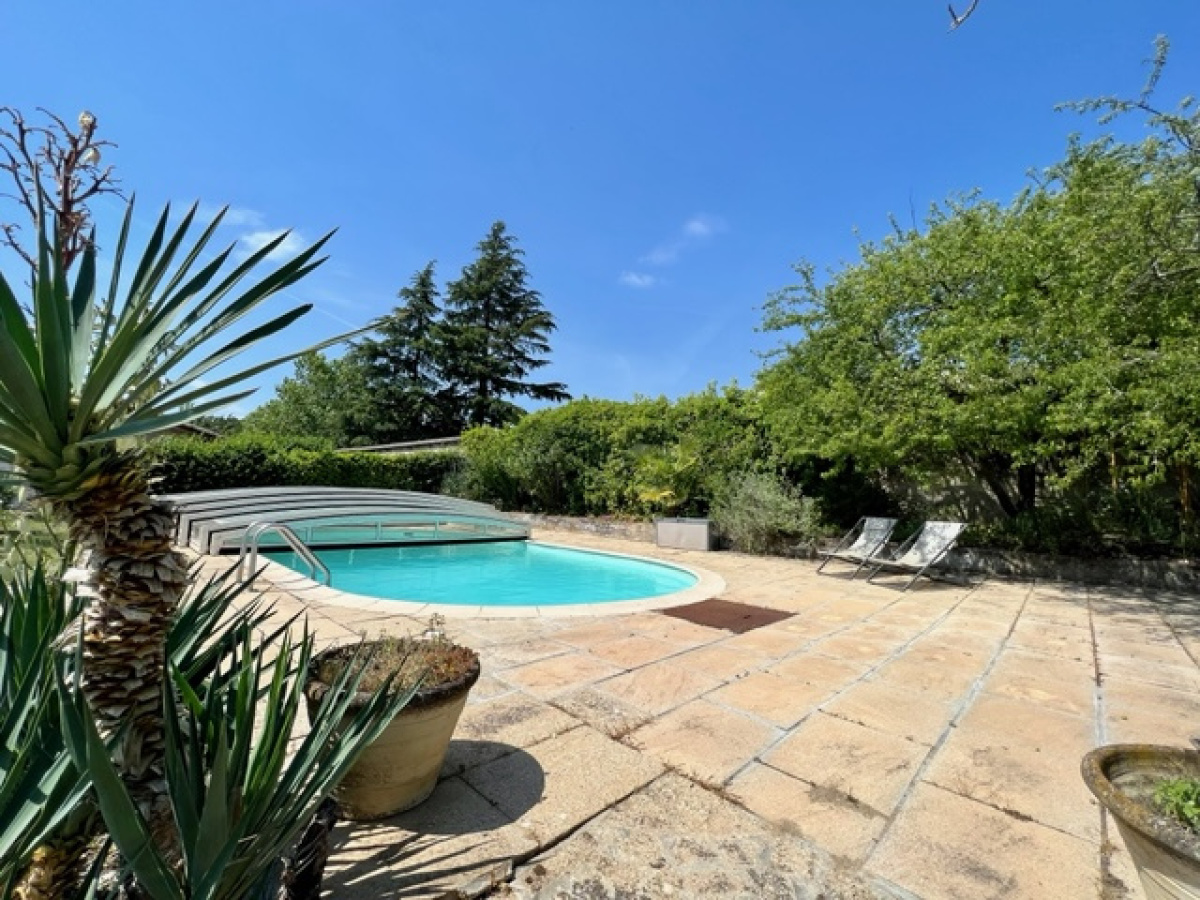 EXCLUSIVITÉ, ROMANS Emplacement prisé à 1.5 kms du centre-ville. Maison contemporaine sur 1/2 sous-sol et vide sanitaire d'une surface habitable de 178 m², comprenant une lumineuse pièce de vie de plus de 71 m² avec une cuisine équipée ouverte + bar/repas sur une salle de séjour/sam et un espace salon avec cheminée + un coin lecture/bibliothèque, le tout donnant sur plusieurs terrasses dont une couverte exposée plein Sud, un dégagement nuit, un wc, deux chambres (placards), une salle d'eau aménagée (douche, vasque et wc), à l'étage une mezzanine/bureau de plus de 11 m², une chambre de 20 m² avec de nombreux rangements (placards) et une petite mezzanine, une suite de 40 m² avec son solarium Vue Vercors (bureau, salle d'eau aménagée avec douche et meuble vasque, chambre mansardée). Au sous-sol une pièce de 75 m², une cave... De plus, un abri pour deux véhicules de 42 m². L'ensemble sur une parcelle de terrain arborée de 1 890 m² avec une piscine (dôme). DPE E (320) et GES D (21). Prix : 400 000 € FAI. Immobilier de Pauline 04 75 47 67 29.