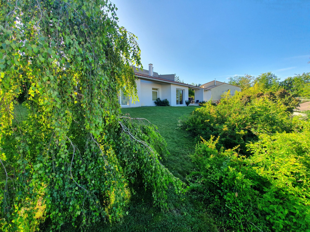 EXCLUSIVITÉ, 10 kms du Centre de ROMANS sur la commune de MARCHES, Dans le village, Villa d'architecte contemporaine très atypique d?une surface de 132 m² environ, comprenant un hall d?entrée avec un coin bureau/bibliothèque, un second hall/dégagement jour avec placard, une cuisine/sam équipée donnant sur une terrasse couverte, une buanderie, une cave, un lumineux séjour-salon donnant sur une terrasse couverte (poêle à bois central), trois chambres dont une avec terrasse couverte (placards) et possibilité d'une 4ème chbre, une salle de bain complète, un wc. Deux garages et deux greniers attenant, l'ensemble sur une parcelle de terrain paysagée de 769 m². DPE Vierge. Prix : 316 000 €. Immobilier de Pauline 04 75 47 67 29.