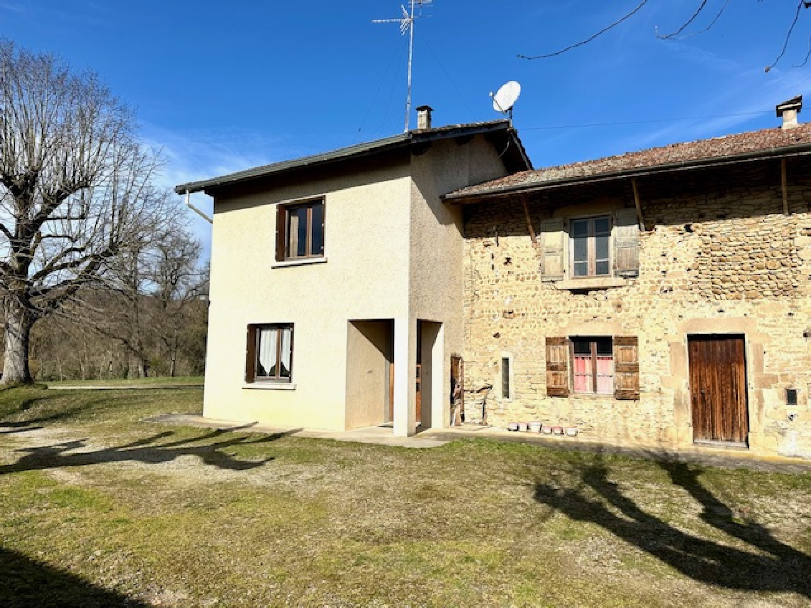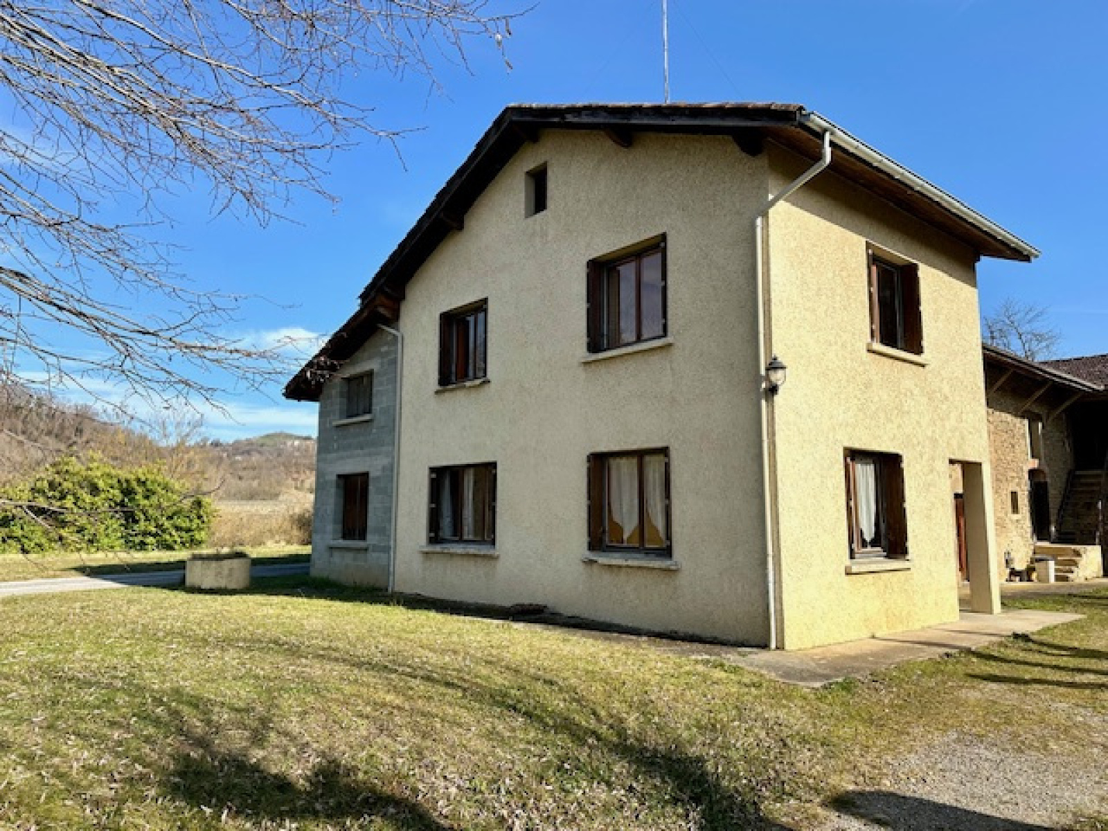 EXCLUSIVITÉ, 10 Kms du centre de ROMANS sur la commune de Geyssans, En campagne. Maison mitoyenne comprenant une première partie issue d'un ancien corps de ferme en pierres puis une seconde partie construite en 1972, l'ensemble d'une surface de 145 m² environ (hors grenier), comprenant au rez-de-chaussée, un hall d'entrée, une cuisine 14 m², une salle à manger 20 m², une pièce (possibilité salon) 20 m², un dégagement, un wc, une salle de bain (vasque, douche, bidet et baignoire), à l'étage, un premier dégagement nuit avec une chambre et un second dégagement avec deux chambres. De plus, une chaufferie de 19 m² au sol avec une pièce à l'étage de même surface. L'ensemble sur une parcelle de terrain de 1618 m². Tavaux à prévoir. DPE & GES F (315-90) Audit énergétique. Montants estimés des dépenses annuelles d'énergie pour un usage standard entre 2660 et 3660 € (prix moyens indexés en 2023). Prix : 170 000 € Honoraires Charge Vendeur. Immobilier de Pauline 04 75 47 67 29.