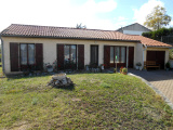 VILLA T5 de 89.30 m² + cellier 8.11 m² et garage attenant 18.48 m². Dans lotissement au calme, ramassage scolaire, proximité. Centre. Construction de 1980. Entrée, salon avec porte fenêtre, cuisine - non équipée- donnant sur terrasse + cellier attenant, 1 salle d'eau, WC séparé, 4 chambres dont 3 avec placards. Chauffage au gaz: chaudière basse température de 06/2015.Terrain: 657 m² clos, 1 puits. Terrasse avec store banne. Très agréable villa à remettre au goût du jour. Possibilité de faire une grande pièce à vivre. Villa saine, de plain-pied.